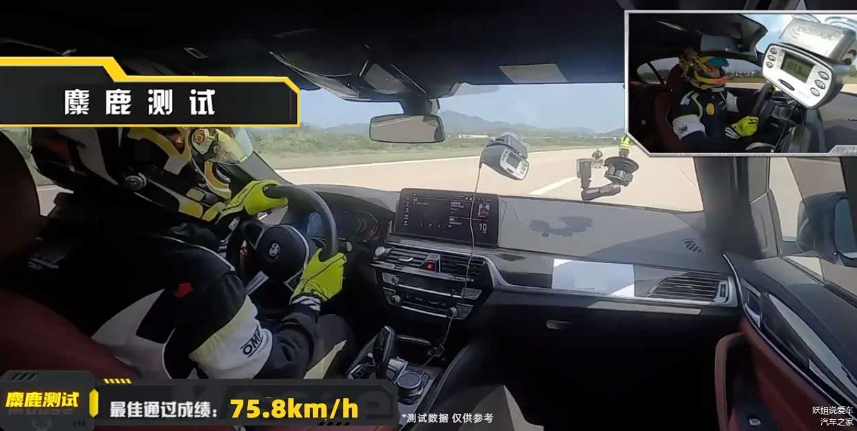 车尾侧滑着进入B区,操作难度有所加大,甩尾的趋势会相对明显一些,但不是很大,整体表现属于良好水平,顺利通过麋鹿测试,成绩为76.8km/h。