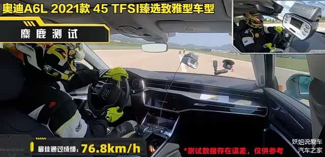 在IS03888-2标准场景下,我们也来看看其竞品车型在麋鹿测试中的表现。从体感上看,相比较上文测评的宝马5系车型,这款奥迪A6L 2021款 45 TFSI臻选致雅型车型在极限状态下,电控系统可以及时介入,实现的降速效果表现一般。