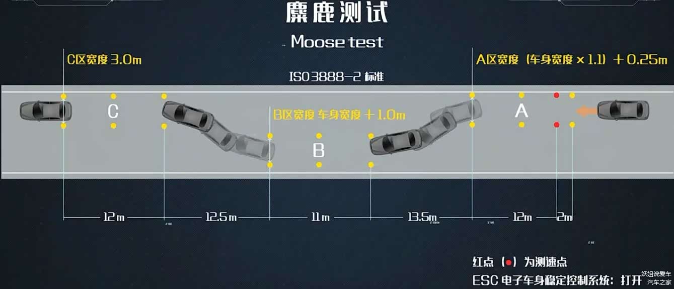 为了更为深入了解悬架的功能特性,我们来看看搭载了该悬架系统的车子在麋鹿测试中的表现,其中测试场景采用了IS03888-2标准。