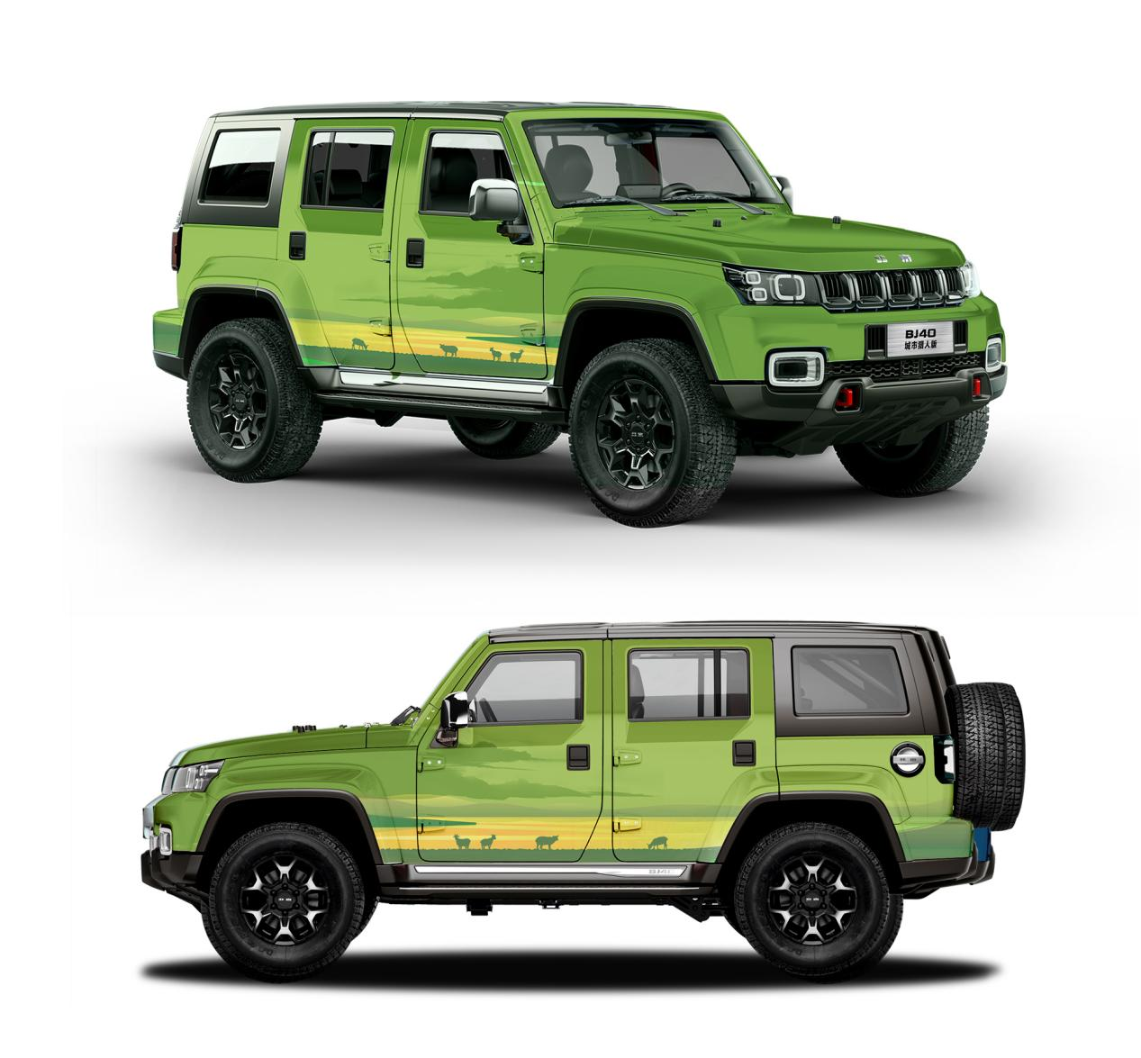 BJ40以呼伦贝尔大草原落日为创意,将祖国大美河山与悠久历史文化融入到了车身“皮肤”的设计理念中,推出了名为“苍茫”的“皮肤设计”,以大草原旖旎风光,唤醒人们对祖国锦绣河山的热爱之情。