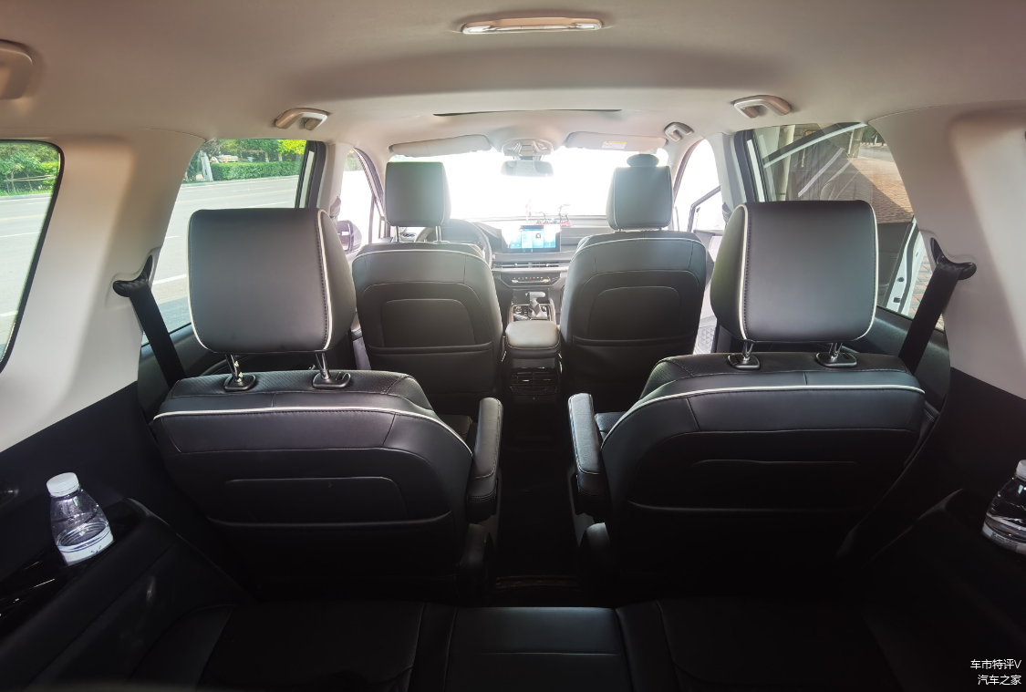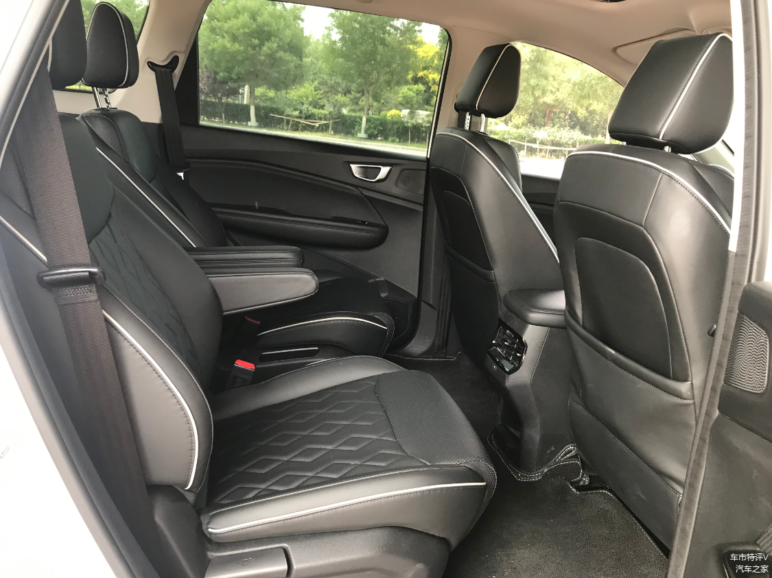 调整好第一排座位后,去第二排座椅体验,头部和腿部都有不错的空间,膝部空间也非常舒适,两个独立座椅也非常享受,如果第三排不坐人的情况下,你甚至还能将座椅调至最后,这样甚至能出来头等舱空间的那种空间享受。