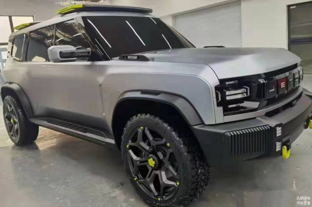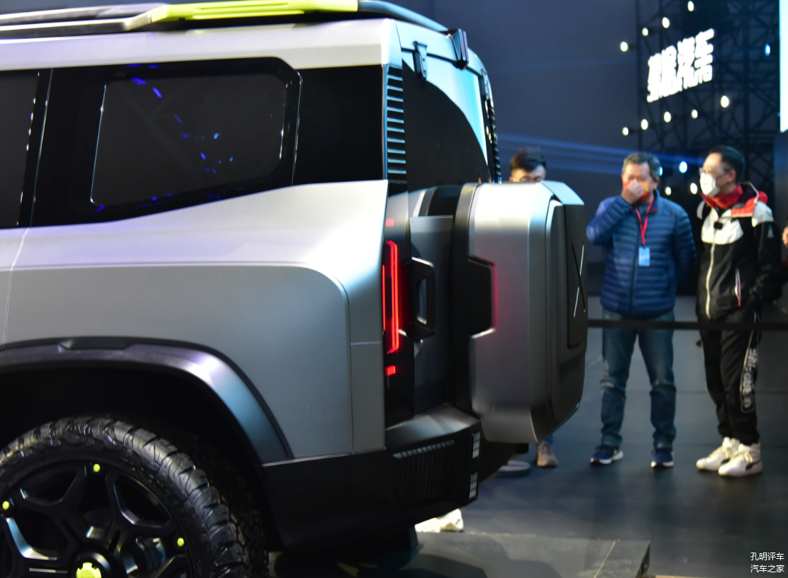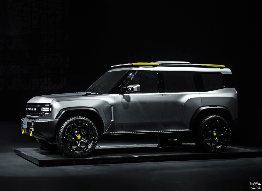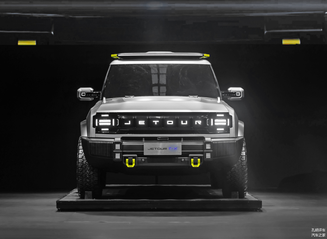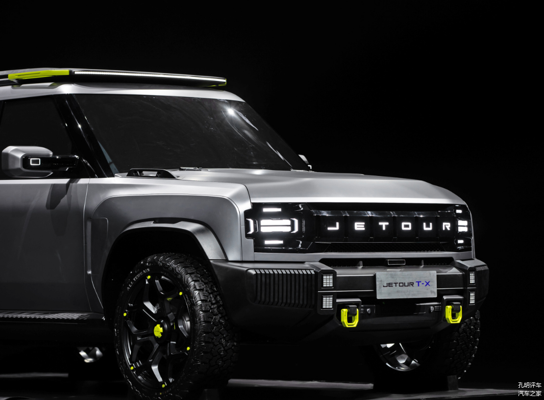 新车前脸风格有复古元素,但整体更偏向于未来感,两侧圆形大灯采用了矩阵模块化设计,这比坦克300的圆形灯光根据辨识度。进气中网结合了奇瑞捷途品牌英文字母车标logo,保险杠位置有颜色鲜艳的拖车钩。侧面看其实更像路虎卫士,我也不同样有小书包造型装饰,不过看样子并非全尺寸备胎,而是类似赛博坦克的工具箱。