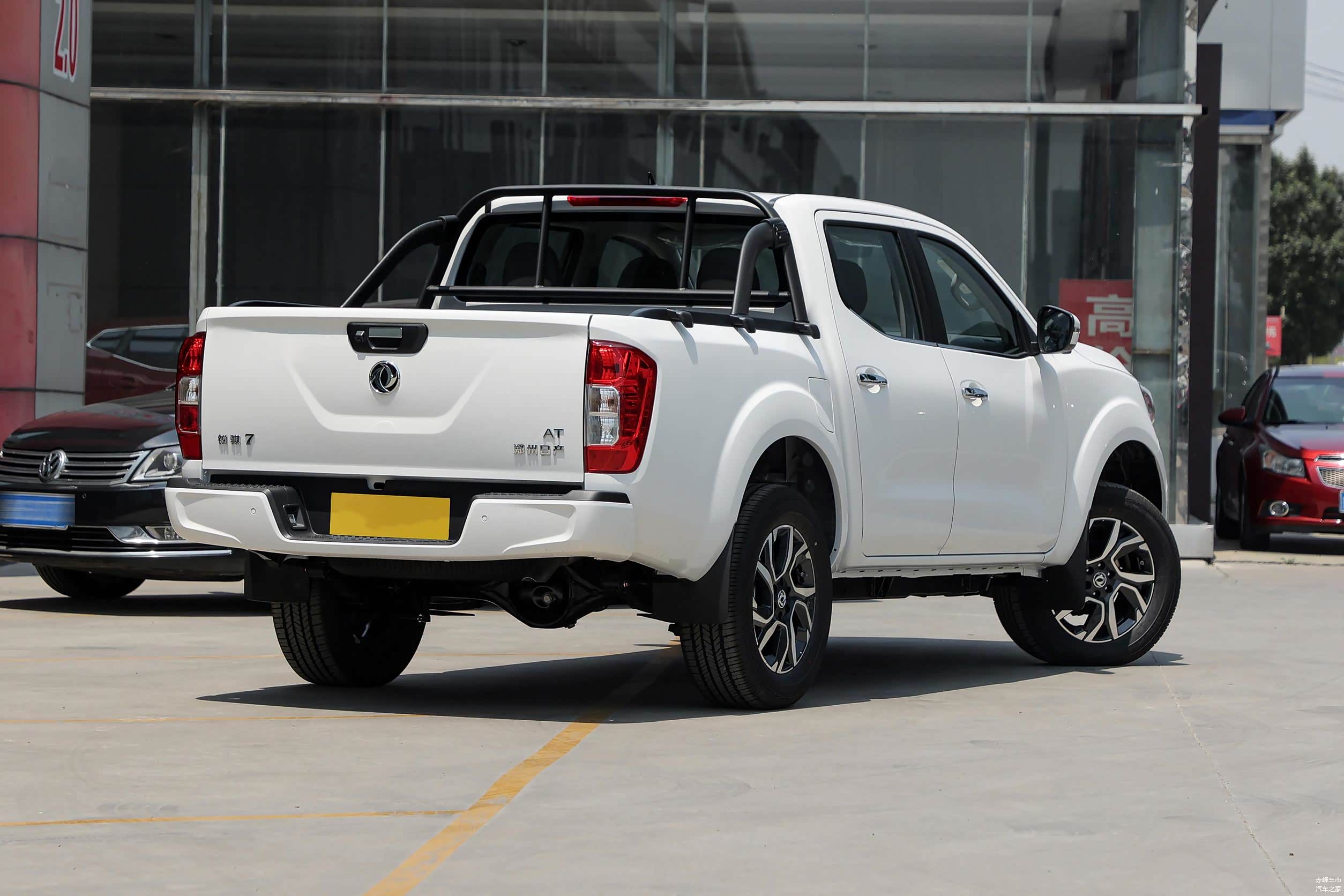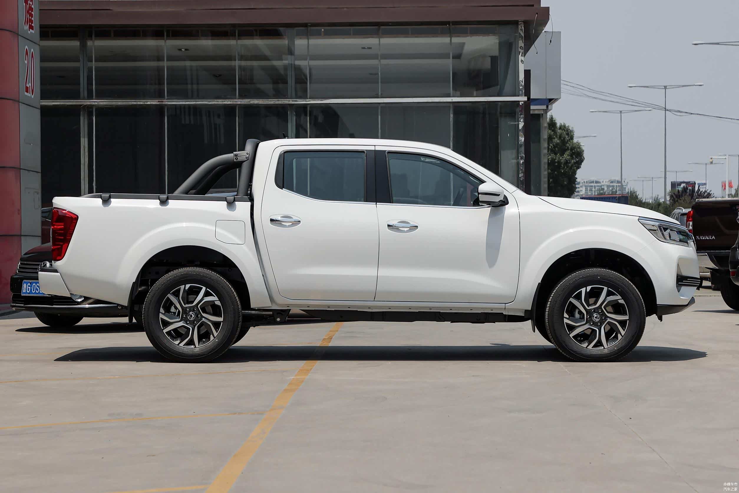 车身侧面是常规皮卡的造型,与日产纳瓦拉的车身比例很相似,并没有采用平直的线条进行修饰,而是选用很多曲线对车身进行勾勒,这也是日产汽车最喜欢用的设计语言。郑州日产锐骐7的前后轮眉都向外突出,使车身侧面更饱满,为整车营造出运动感。虽然郑州日产是一台皮卡车,除了货箱安装了龙门架之外,在车顶也安装了行李架,在视觉上让整车看起来更硬派。车身尺寸方面的长宽高分别为:5287/1850/1832mm,轴距为3150mm,这样的车身尺寸在同级车型中并不算突出。