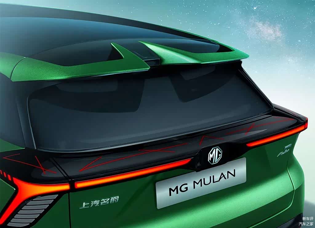 上扬的腰线+掀背的尾部让MG MULAN有着SUV的造型,但它确实一台跨界车。顶部配备了双片扰流板,配合玻璃天幕确实显得很有未来感,贯穿式尾灯延伸部分相当宽泛,对它的体型来说甚至有些过于夸张了。尺寸方面,MG MULAN的长宽高分别为4287/1836/1516mm,轴距为2705mm。至于内饰,暂时还未公布。