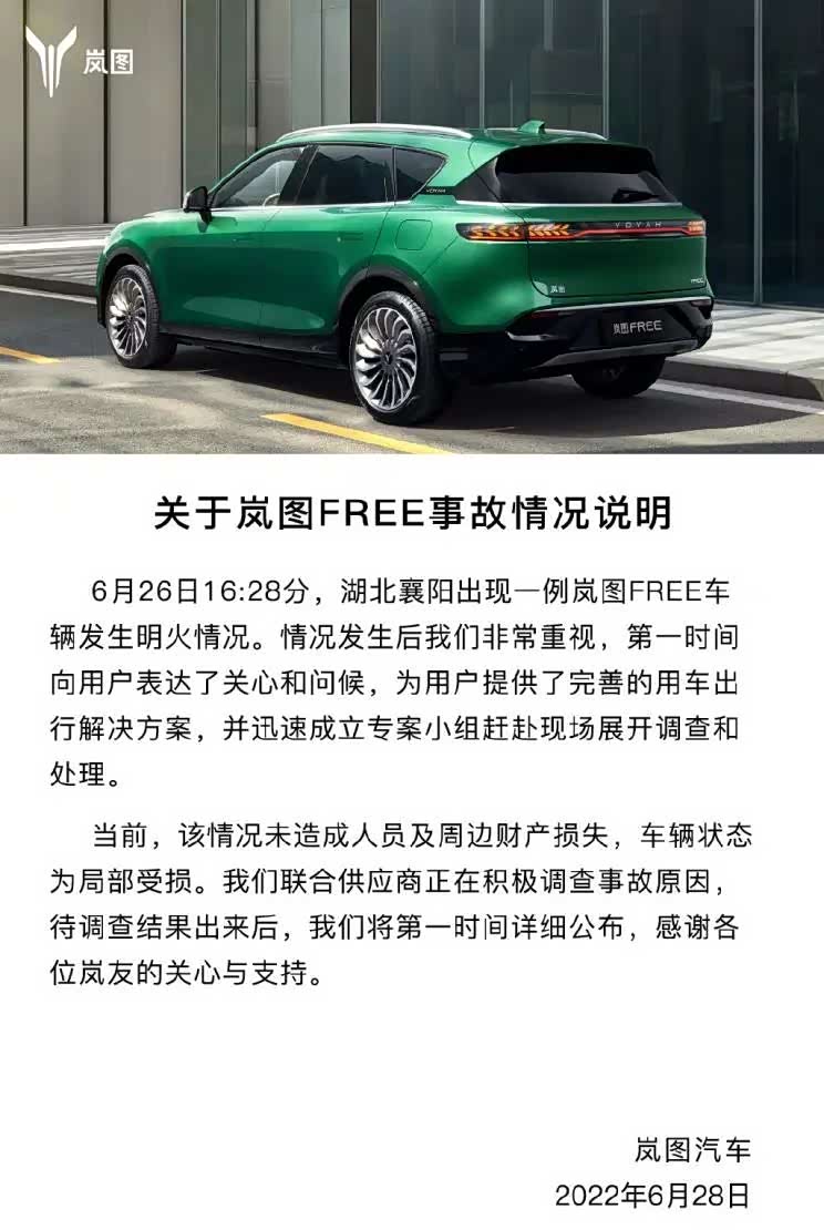 对此,岚图汽车发布了情况说明,表示目前已经成立了专案调查小组,并为用户提供了完善的用车出行解决方案等。内容本质就是一份常规的公关说明,并无太多有用的信息,而关于起火原因,也需要通过调查之后才能知晓。