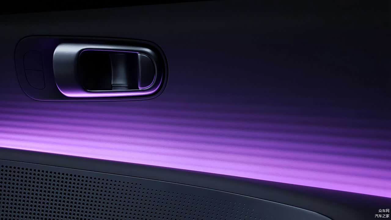 中控台指示灯和通风口装饰等处都应用了现代汽车独有的参数化设计语言,IONIQ 6还首次应用的双色氛围灯,像波浪般蔓延开来,为车内空间增添了梦幻的温馨氛围。车内上下各64种颜色,可以独立组成4,096种组合,流光溢彩的效果,仿佛整个座舱都被霓虹灯包围了。