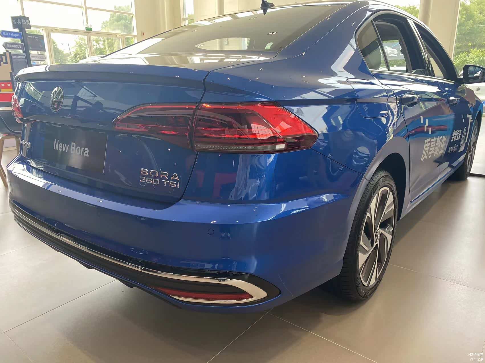 从侧面看,车身整体的轮廓并没有做过多调整,腰线依旧是自下而上的俯冲形成俯冲的姿态,实拍这款顶配车型使用了17英寸的刀锋式铝合金轮圈,看起来非常有运动感。来到车尾,280TSI的尾标表明了这台车搭载的是1.4T发动机,底部除了镀铬亮条样式与之前有所不同以外,后包围还加入了扩散器结构,进一步突出整台车的运动氛围。