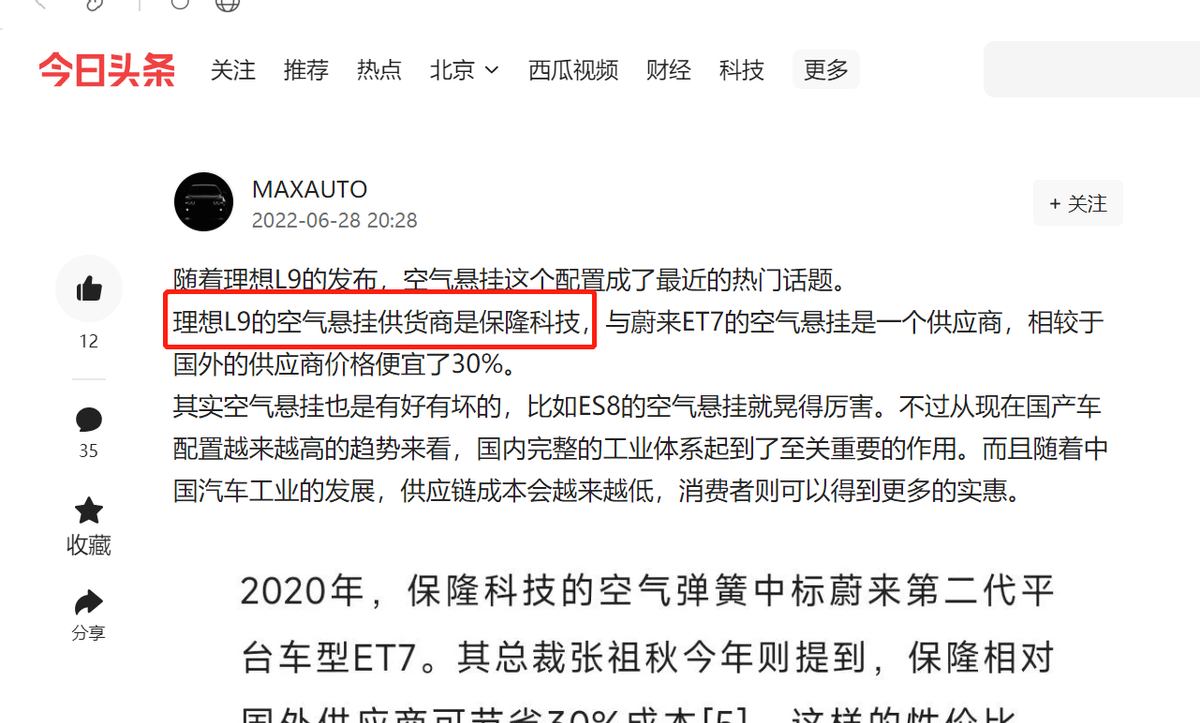 近期,随着 理想L9(图片 | 参数 | 询价)的发布,汽车圈可以说是格外“热闹”。产品怎么样先不谈,号称“五百万内最好的家用SUV”以及叫板库里南这两件事,就引来了不少争议。但就在这两天,有人发现,理想L9主打的空气悬挂系统供应商却也悄咪咪的换成了国产。这也引发了笔者的一些思考。