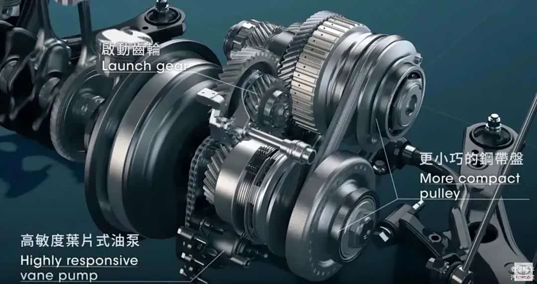 而四缸机使用的是S-CVT变速箱,是丰田公司的第三代CVT变速箱,型号是K114,能承受的最大扭矩是200N.m,最大速比是6.5:1。这款CVT变速箱槽点是比较多的,有较多的投诉,比如变速箱异响、顿挫、钢带断裂等。这款变速箱没有起步齿轮,在起步时就使用钢带传动,汽车所承受的所有的阻力都由变速箱钢带承受,所以很容易超负荷打滑。此外,这款变速箱也有比较明显的冷保护,在北方寒冷的冬季,早晨冷车是跑不快的。这款变速箱只应用在丰田中低端车型上,比如卡罗拉、雷凌、威驰、致炫等。