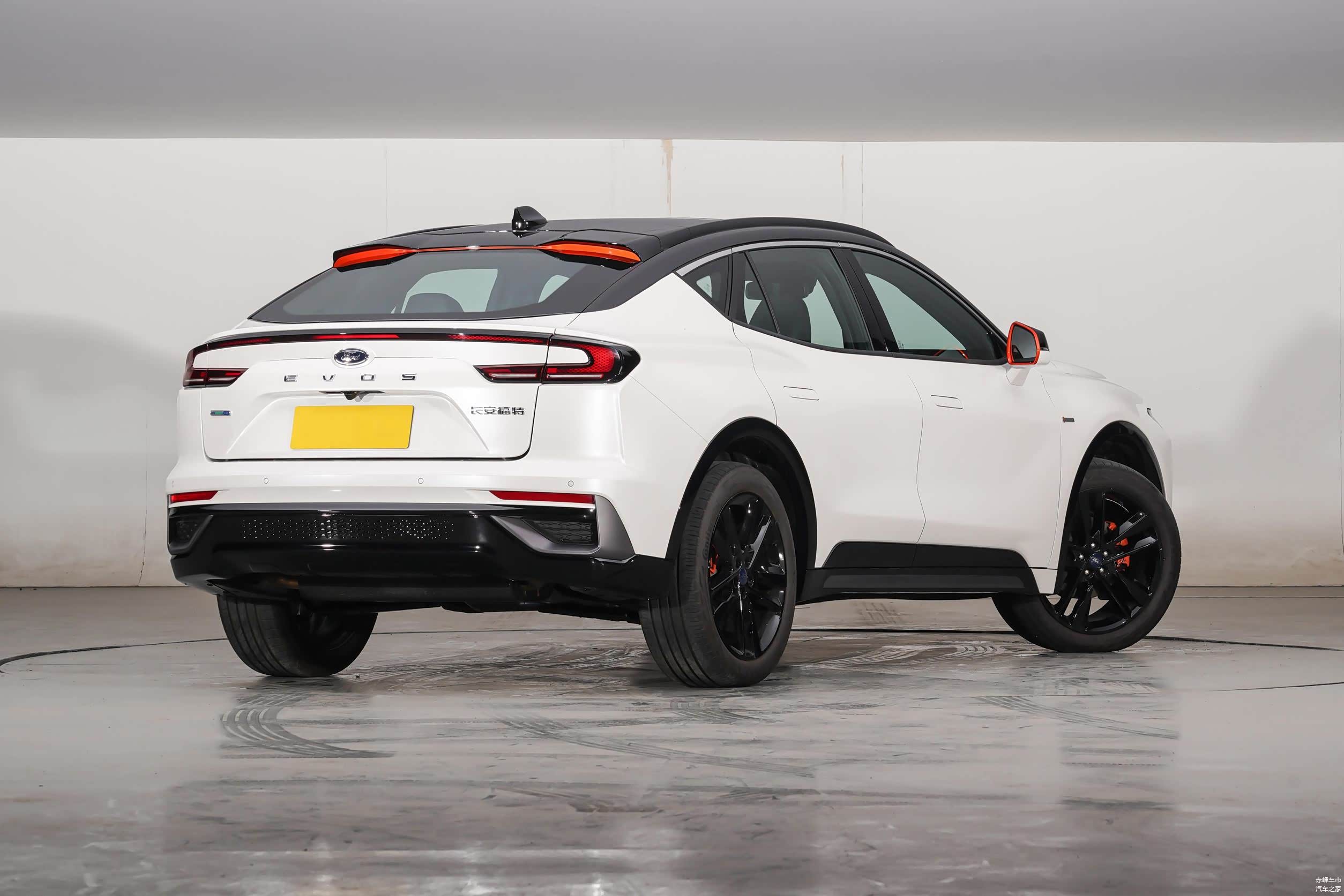 车身尾部的设计与车头相呼应,依旧采用贯穿式尾灯设计,尾灯造型与阿斯顿·马丁的尾灯相似度很高,在车顶上方还配有尾翼,边缘部分用橙色的饰条进行装饰,为整个车尾增添运动感。为了提升整车的辨识度,在福特车标的下方还设计了EVOS的字母。对于车尾部分来说,唯一美中不足的就是采用隐藏式排气,不能彰显出运动感,如果是双边双出的排气筒,会让车尾显得更协调。