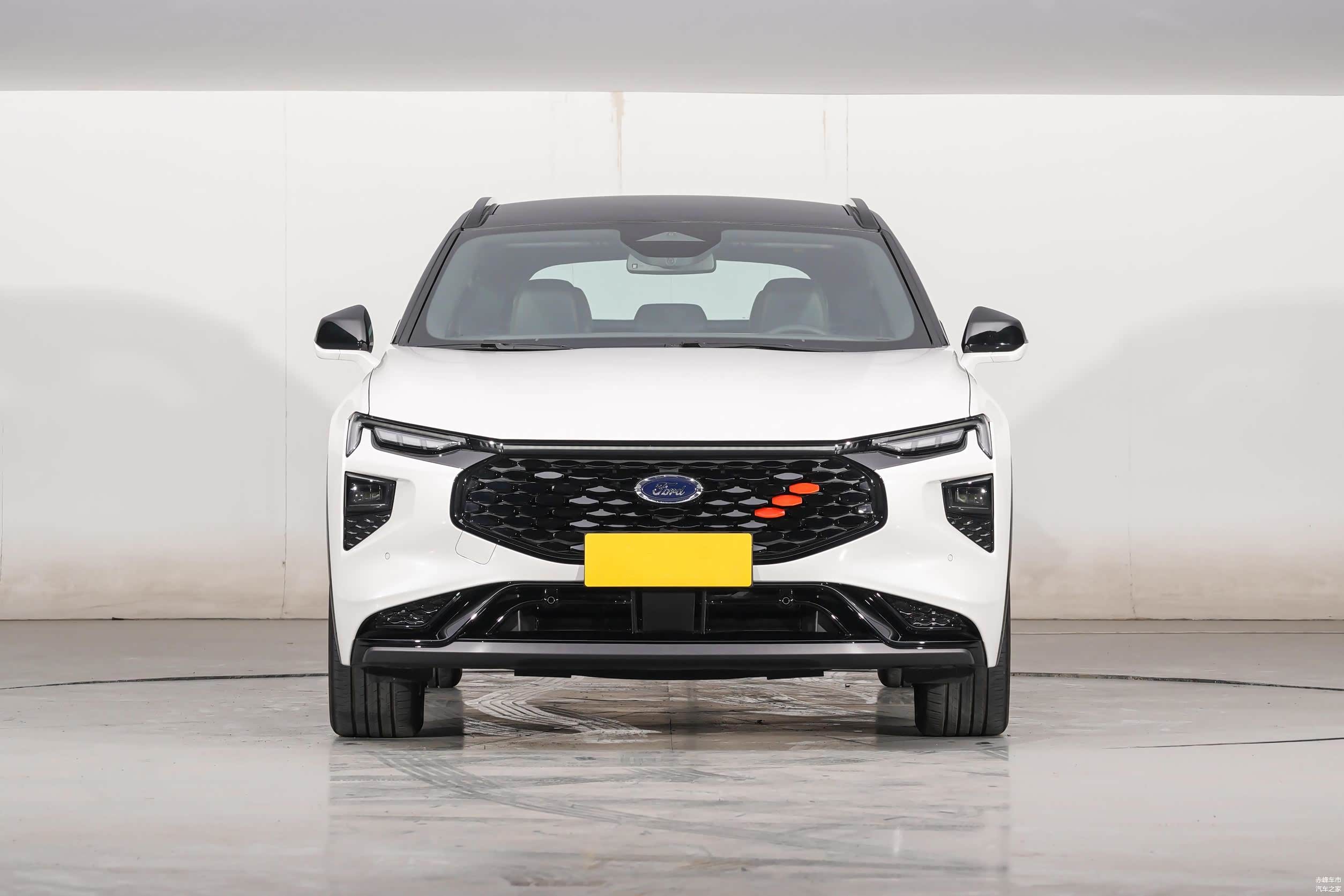 福特EVOS与其它福特车型不同,福特EVOS是由中国设计师独立完成的,所以更符合国人的审美。车头部分为福特全新的设计语言,贯穿式LED日间行车灯辨识度很高,并且具有新能源汽车的感觉,大灯组采用现在非常流行的分体式设计,上部分为转向灯和日间行车灯,下部分为照明大灯组,内部采用LED光源,设计在两侧的进气口位置,熄灭时形成隐藏式设计,整体性更强。蜂窝状中网是性能车的标配,为了能够突显出运动感,在中网右侧还增加了三个红色的装饰,看起来更有活力。
