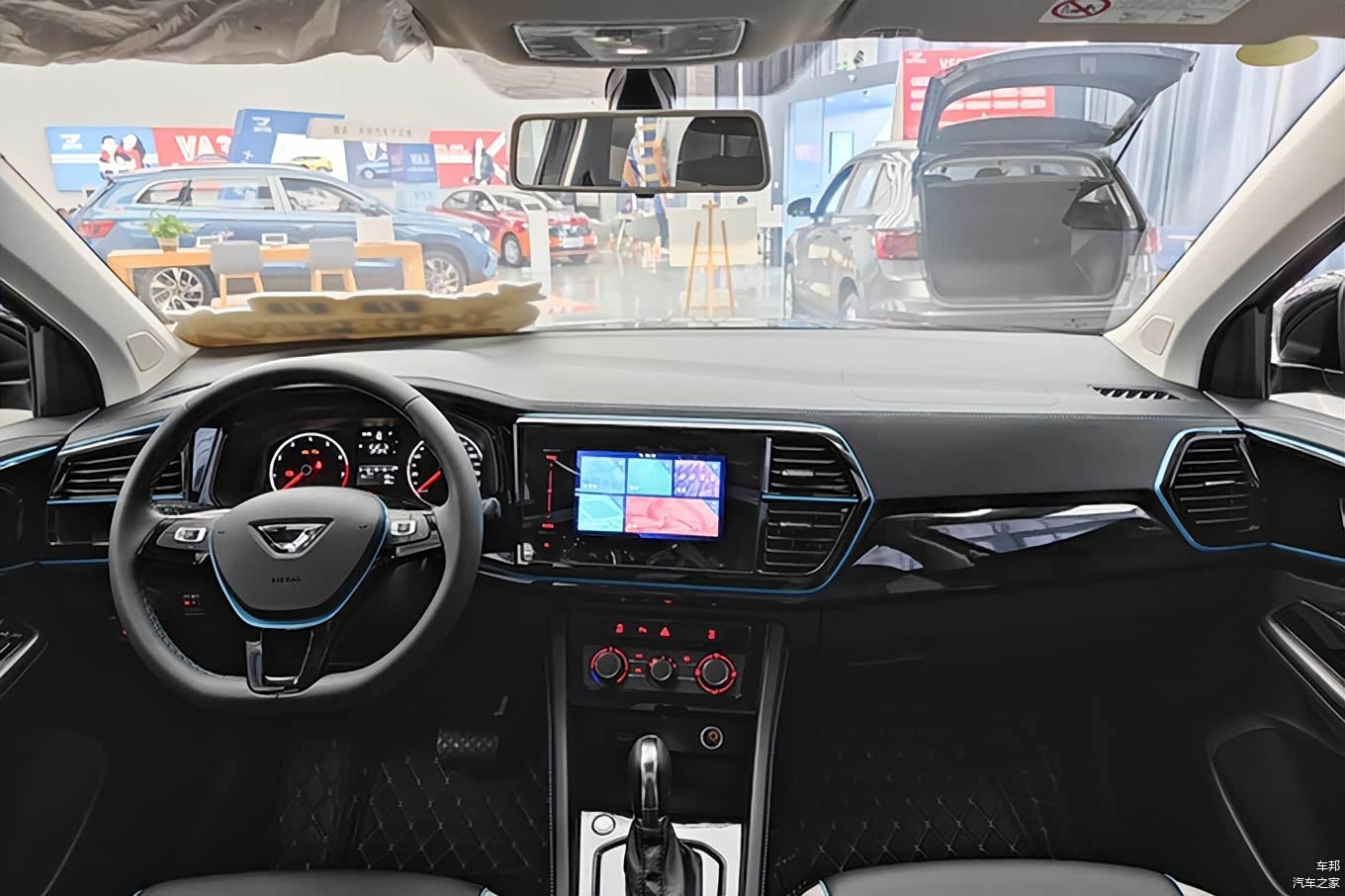 内饰方面,新捷达VS5采用了大面积软质材料进行包覆,同时,高光版车型为了让黑色内饰更有质感和个性,在方向盘、中控、空调出分口、门板等多处增加了全新蓝色饰条,并将车内缝线颜色也调整为蓝色,使得新车的精致感与层次感都有明显提升。