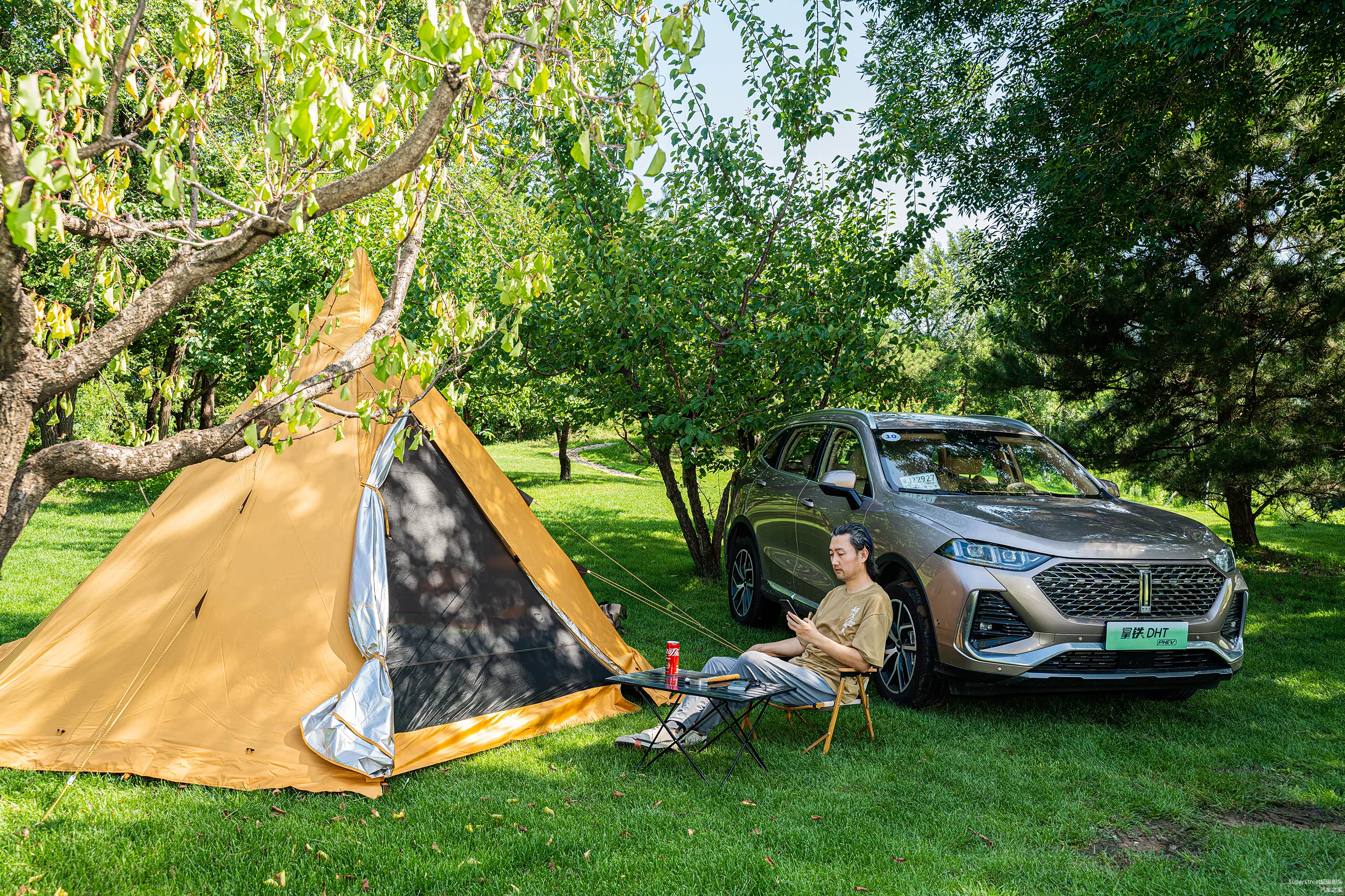在高速公路上驾驶拿铁DHT-PHEV这款混动车型,动力系统还是很强悍的,最大功率321kW,峰值扭矩762Nm,起步时可以借助电机,直接到达最高扭矩。有7种驾驶模式,经济、运动、标准、雪地、四驱、泥地、沙地。在到达露营点位肯定会有非铺装路面,可以开启四驱模式,但是也不要轻易的去尝试沙地行驶,能避开危险还是要避开,不然高额的拖车费会让你很难受的。