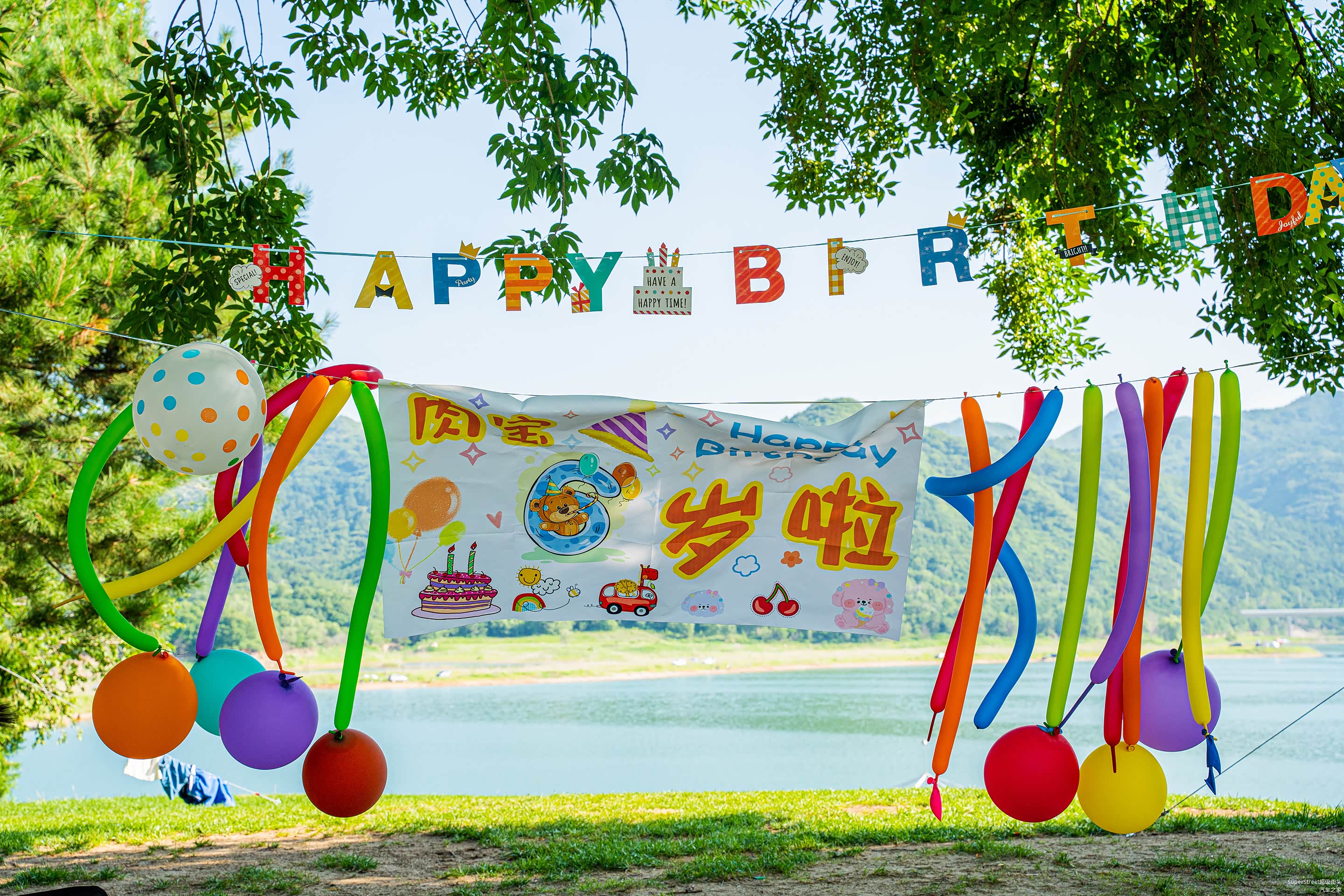 有很多家庭来这里露营,也有带着孩子,为孩子庆祝生日的家庭,特意制作了烘托气氛的气球和庆生幕布,这家还是很用心的,我家孩子都快上大学了,也没有为孩子这样庆祝过生日。另外如果不是住店客户,车辆是不能开进岛内的,需要停在门口的停车场,可以准备露营车把装备拉进来,不然来回搬运还是比较累的。