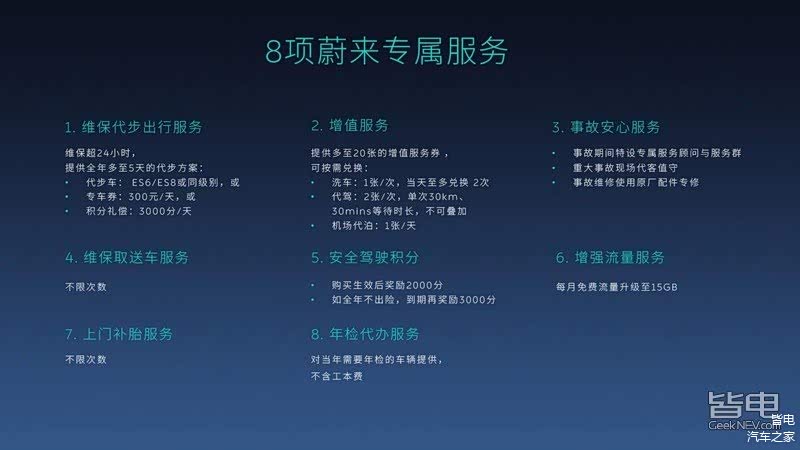 除了硬件功能升级以外,新势力还擅长在服务领域提供订阅付费服务,有点像APP里会员的意思。比如说蔚来,用户可以订阅它们家的保险无忧或者服务无忧,在期限内,用户可以享受免费维修、保养全包、上门取送车等一系列增值服务。