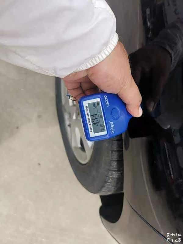 测一测漆面,数值狂飙400多,显然这不是简单喷漆修复,而是钣金过了。