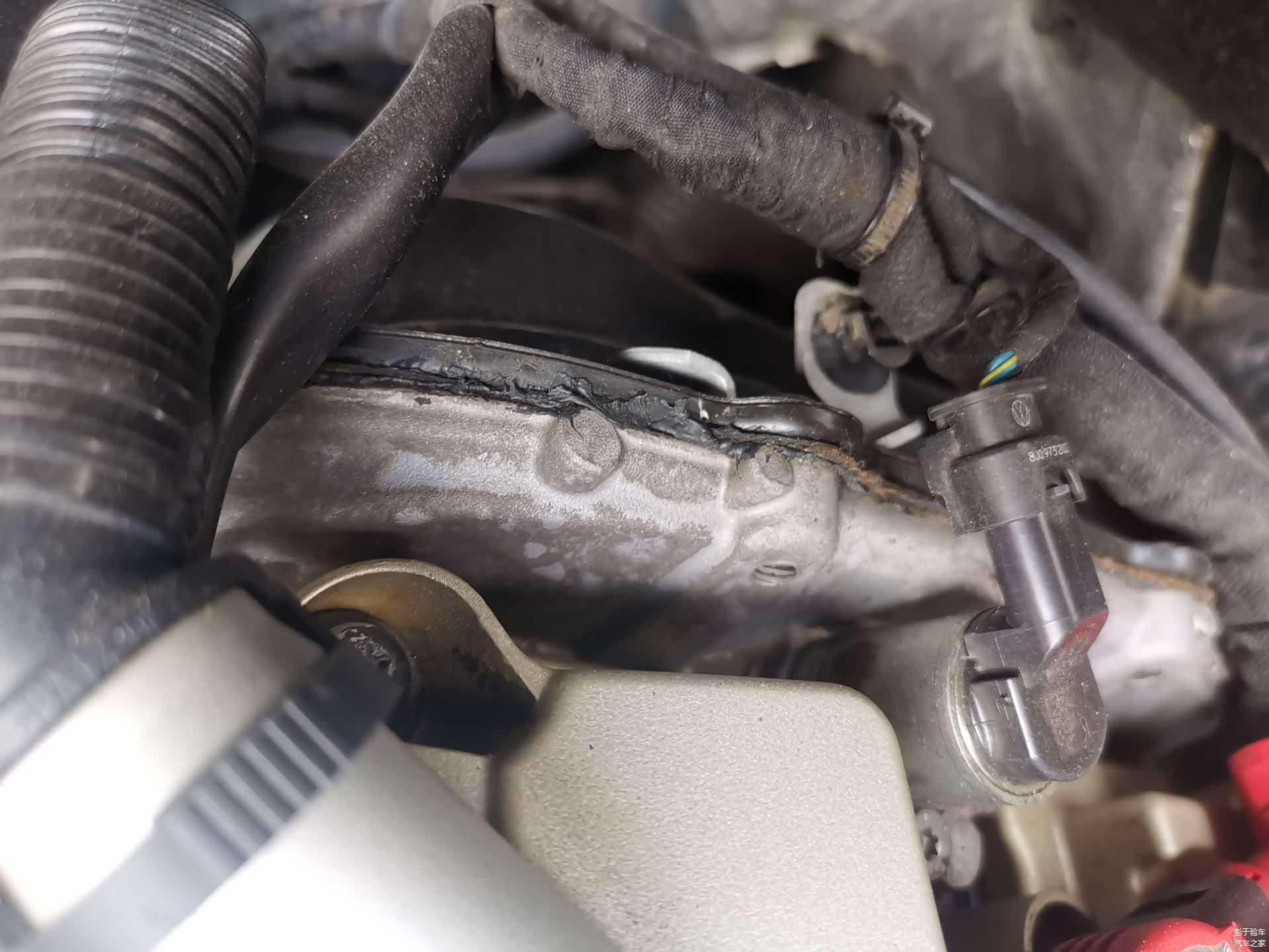 但是在侧盖发现了又明显拆开的情况,重新打胶也打的非常的粗糙。十几万公里的Q7,发动机有可能是渗油的,表面这么干净也说不准是清洗后的结果。