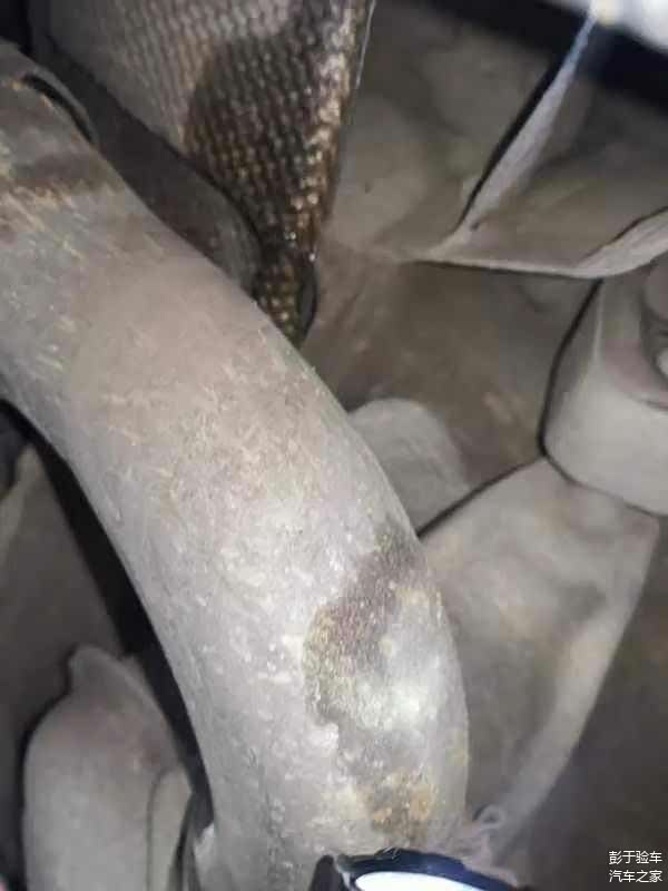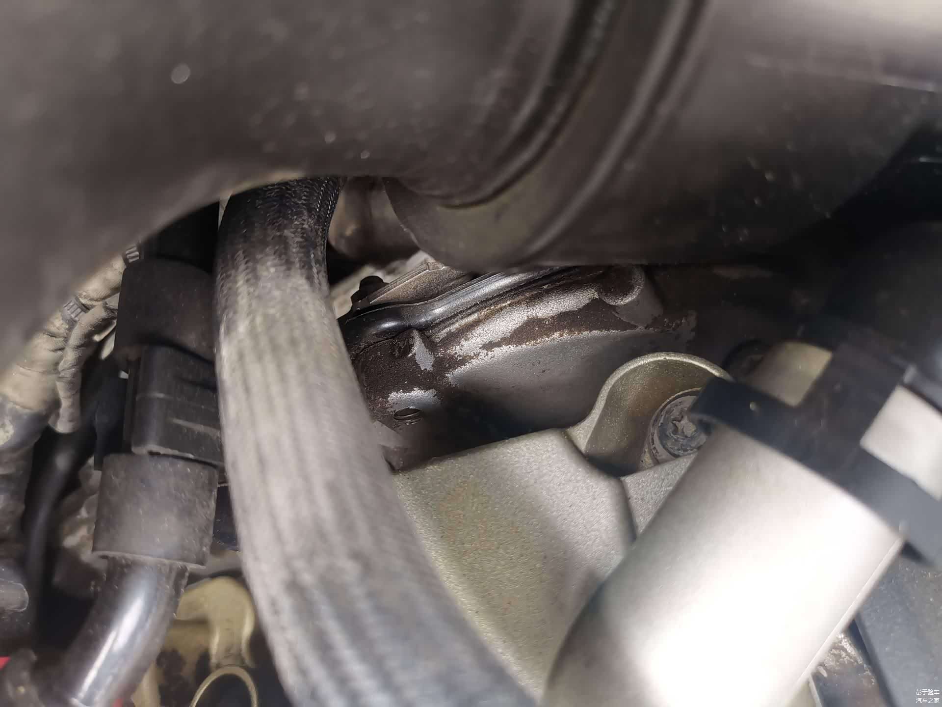 进气管遮挡的部分有油泥,那可能是倒机油时的溢出,让这里沾染的油污。因为油泥本身没有潮湿的黏腻感,证明此处不是持续渗出的情况。