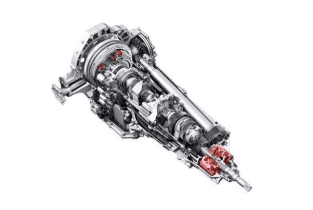 它由两根传动轴和两套多片式离合器组成,它们分别控制不同的档位。位于外部的离合器通过实心轴将动力传递至1,3,5,7速一个空心轴围绕一个实心轴旋转,并与内部的另一个离合器连接,控制2,4,6速和倒挡的动作。两套传动结构中都有一套齿轮处于啮合状态,但每次只有一套齿轮通过选定的离合器与发动机连接。当一套离合器控制传动轴与发动机连接时,另外一套系统随时处于待命状态。例如当驾驶人在3档加速时,另外一根传动轴就已经做好了4档准备,通过改变离合器来实现档位切换。