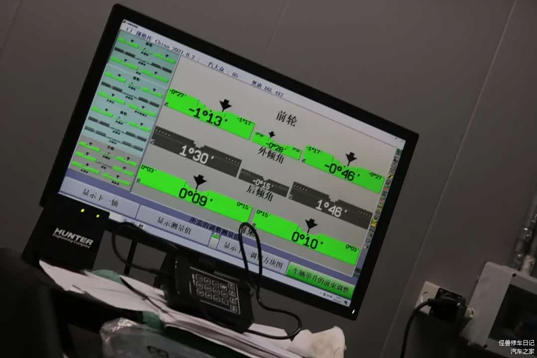 轮胎回装车身,上美国HUNTER定位仪,进行底盘数据调教。