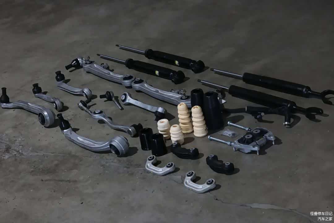 底盘件整体更新,避震器、摆臂、拉杆、支臂、球头、防尘套等。