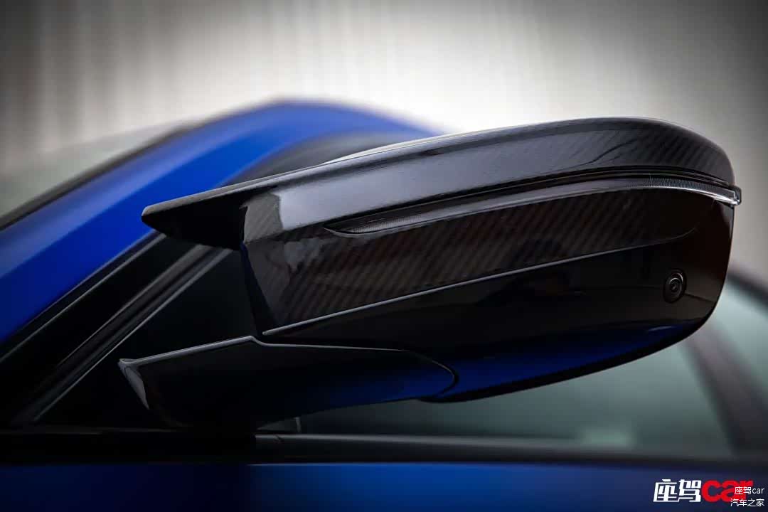 除了这款好似有着无穷无尽隐藏力量的车漆之外,我们的这台i4 M50还选装了M碳纤维外观组件,位置包括前侧进气口、外后视镜盖、后底部侧饰以及全新M4同款几何设计的后扰流板,其中最显眼的无疑是两个外后视镜,碳纤维深色后盖与磨砂波尔蒂芒蓝车身产生了强烈的视觉撞击,内侧凸起的小“翼尖”则是整车空气动力学套件的“冰山一角”,也是纯正M车型的重要标识之一。