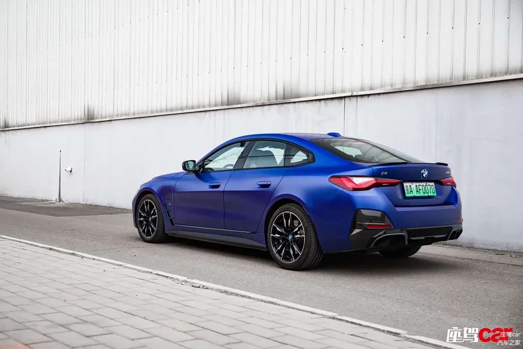 初次见面,这台由i和M双部门联合打造,有着磨砂蓝色车身的i4 M50就已经将我完全迷住。虽然它与我们不久前体验的430i GranCoupe在整体车身风格上大差不差,按说不应该引起我这种程度的痴迷,但就是这个颜色让我感受到了它的那种超凡脱俗的气质。通过官方资料,我了解到这款磨砂波尔蒂芒蓝车漆是M50版本的专属选装配色,需要用户额外付出1.24万元的成本。要知道,它可是历代M的正统配色,在海外的选装价格甚至超过3000欧元,国内仅需要大约一半的价格就能选到。50多万都花了,还在乎这能够瞬间彰显身份的1万吗?