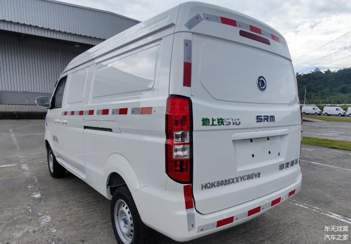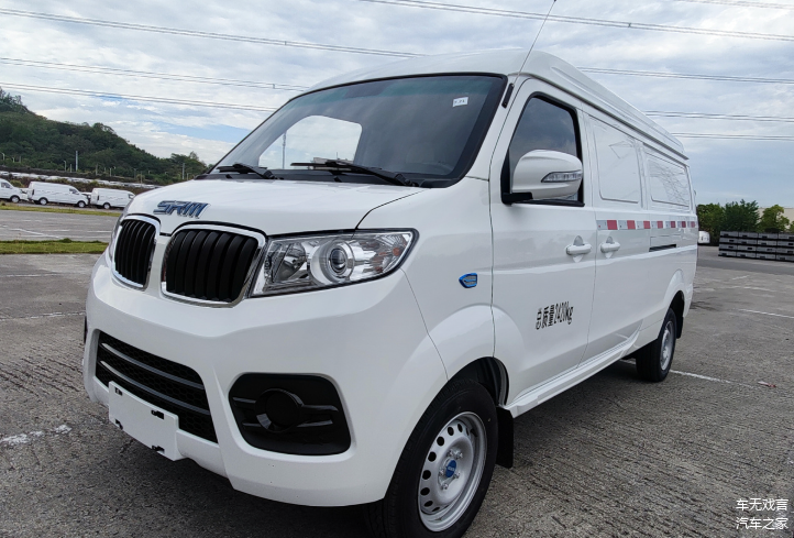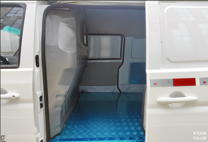 从车身侧面来看,新车采用了封闭式车窗的设计,并配备有双侧滑门。在车身尺寸方面,新车的车身长宽高分别为4495/1680/1990mm,轴距为2925mm,定位为五门2座的纯电动微面。另外,新车配备有14英寸的轮毂,并采用了前盘后鼓的制动器配合手刹制动。