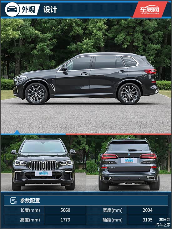 车身尺寸是华晨宝马X5最重要的变化,相比进口版车型,车身长度和轴距均加长了130mm,具体长宽高分别为5060/2004/1779mm,轴距为3105mm。