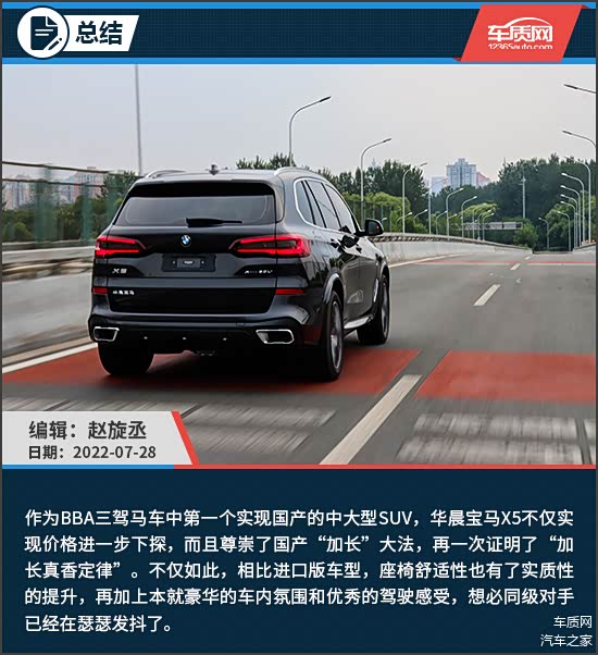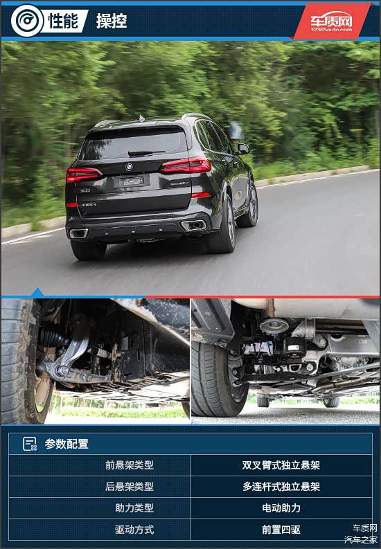 悬架方面,华晨宝马X5依旧采用前双叉臂式、后多连杆式独立悬架组合,从实际体验来看,悬架的整体调校比进口版更加软了一些,看到这里肯定又有不少人表示宝马失去了运动精髓,但反观现款3系长轴版(G28),自从换代后,舒适性的调校似乎受到更多消费者的喜爱,销量也是节节攀升,毕竟“运动只是一时之快,舒适才是最终诉求”。同理,华晨宝马X5悬架舒适性的调校绝对是利大于弊的。