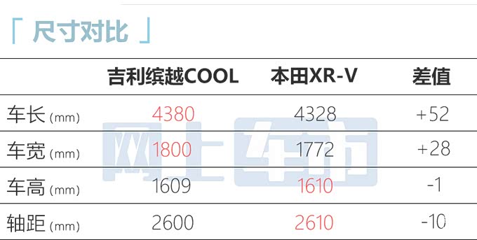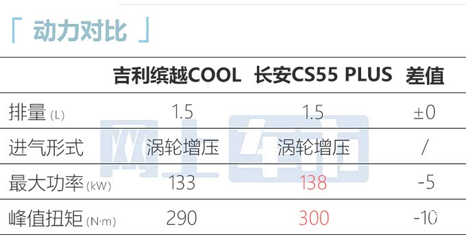 吉利缤越COOL搭载1.5T+7DCT全新动力总成,匹配7速双离合变速箱,零百加速7.6秒,百公里油耗5.8L。新车尺寸介于本田XR-V、长安CS55 PLUS之间,动力比XR-V更强。