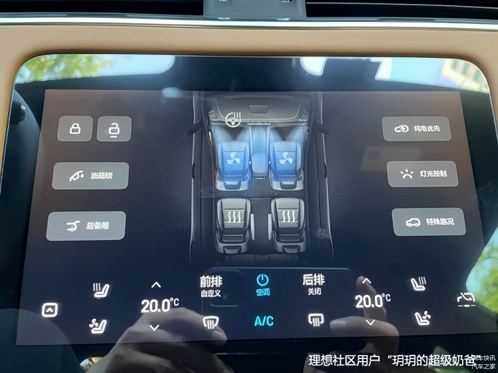 用好理想ONE远程控制空调 ,一上车就有20℃的清凉感受。那么在行驶中,如何快速调节空调温度和风量?