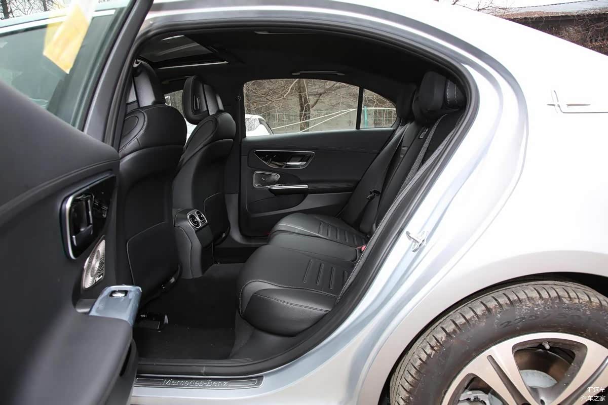 目前国产版本的奔驰C级都是长轴距,车身尺寸分别为4882x1820x1456(1461)mm,轴距为2954mm。后排的乘坐空间是非常宽敞的,笔者175cm的身高坐在后排,腿部空间有两拳多,头部空间差不多是一拳。因为是后驱结构,所以中间地板的凸起是比较高的,坐在中间的乘客难免会受到影响。座椅的填充物是比较柔软的,座椅材质全系均为仿皮,如果对座椅材质有高要求,奔驰C级也是提供选装真皮座椅的服务。