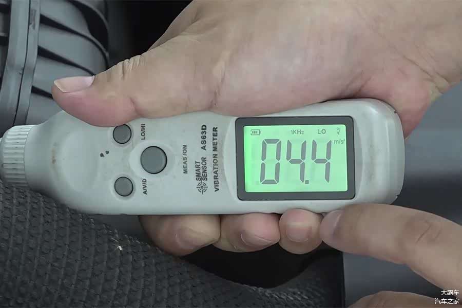 测试方法:水温正常后,关掉空调,在怠速状态下,使用测振仪垂直曲轴方向,将探针接触发动机金属机体中间的最高位置,测量发动机振动加速度值,数值越低,表明振动越小。