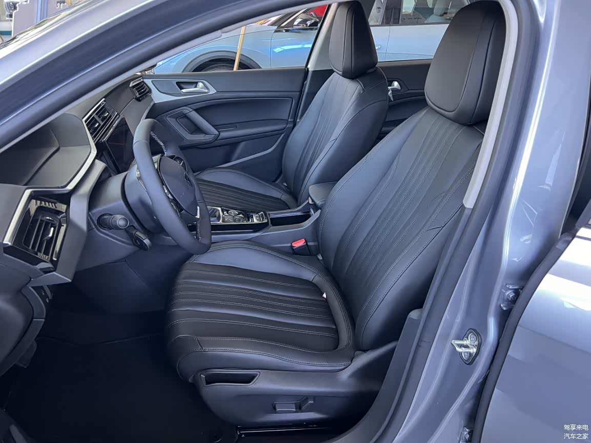 实拍车型为中配的追光版,配备了皮质座椅,触感较为细腻,包裹支撑到位,驾驶位带有8向电动调节,顶配版则还会提供副驾电动调节以及前排座椅加热功能。