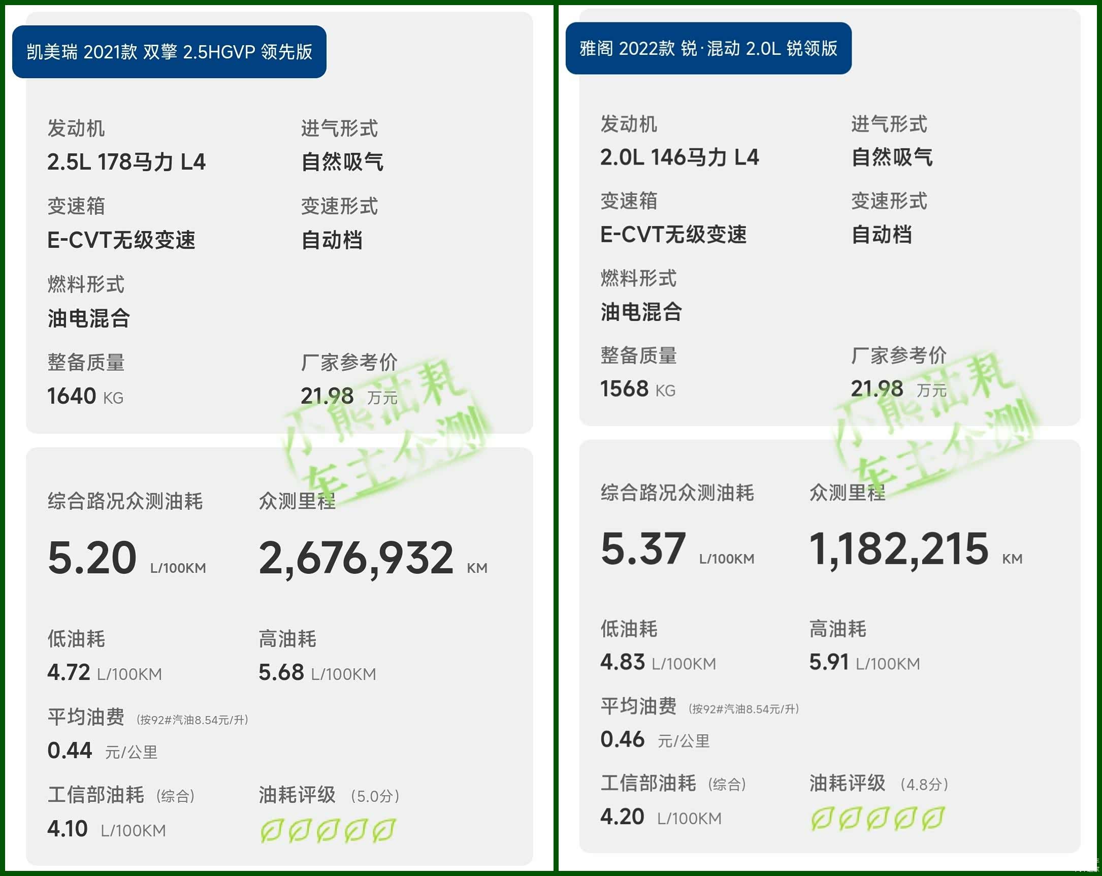 在合资车里,本田雅阁混动的最大竞争对手是丰田凯美瑞双擎,本田雅阁混动的优势在于采用了更大功率的电机,而且日常行驶完全以电驱为主,以增程式模式运行,驾驶感受与EV车型相似,动力响应更快。而丰田凯美瑞双擎由于有着2.5L的基础排量,连续暴力加速低电量之后对于性能影响较小,性能持久度更高,在油耗众测中小幅领先。