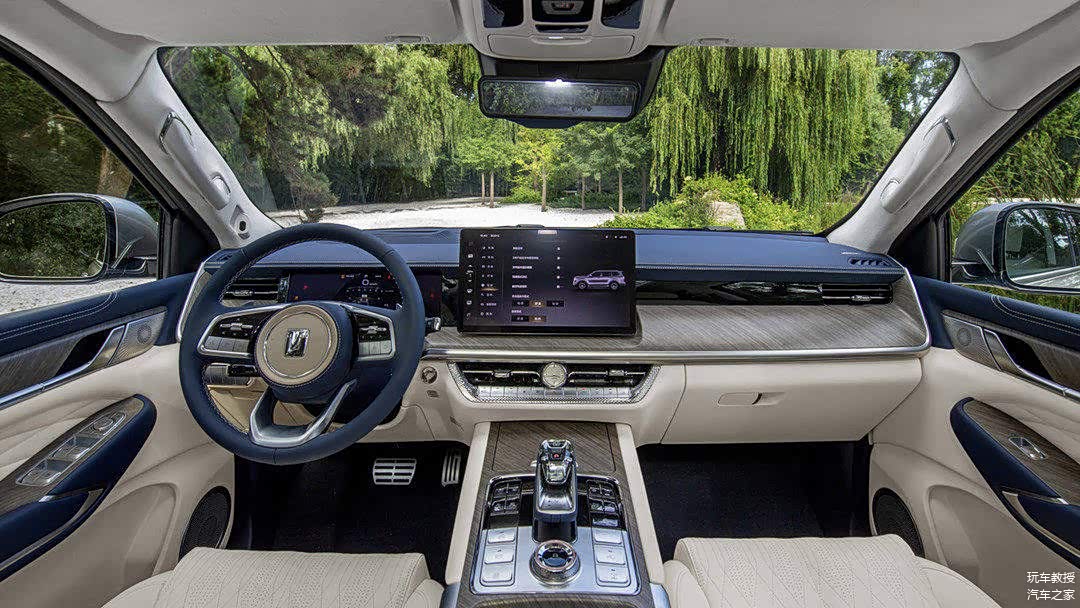 而车厢之中更显轻薄的贯通式中控造型到诶大尺寸悬浮式中控屏、大面积木纹饰板、棱形座椅缝线等设计都让坦克500的车厢看起来更显豪华范。