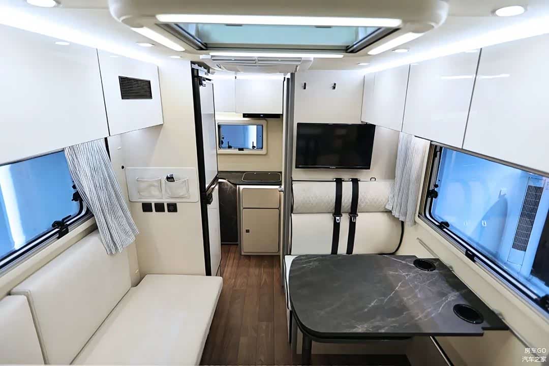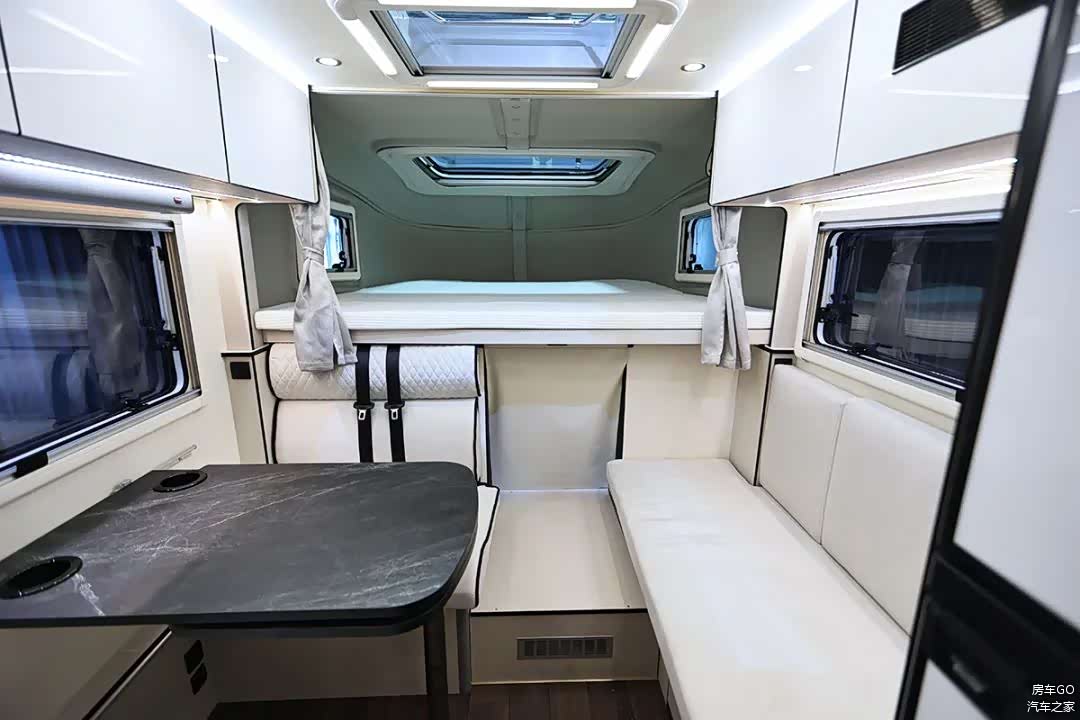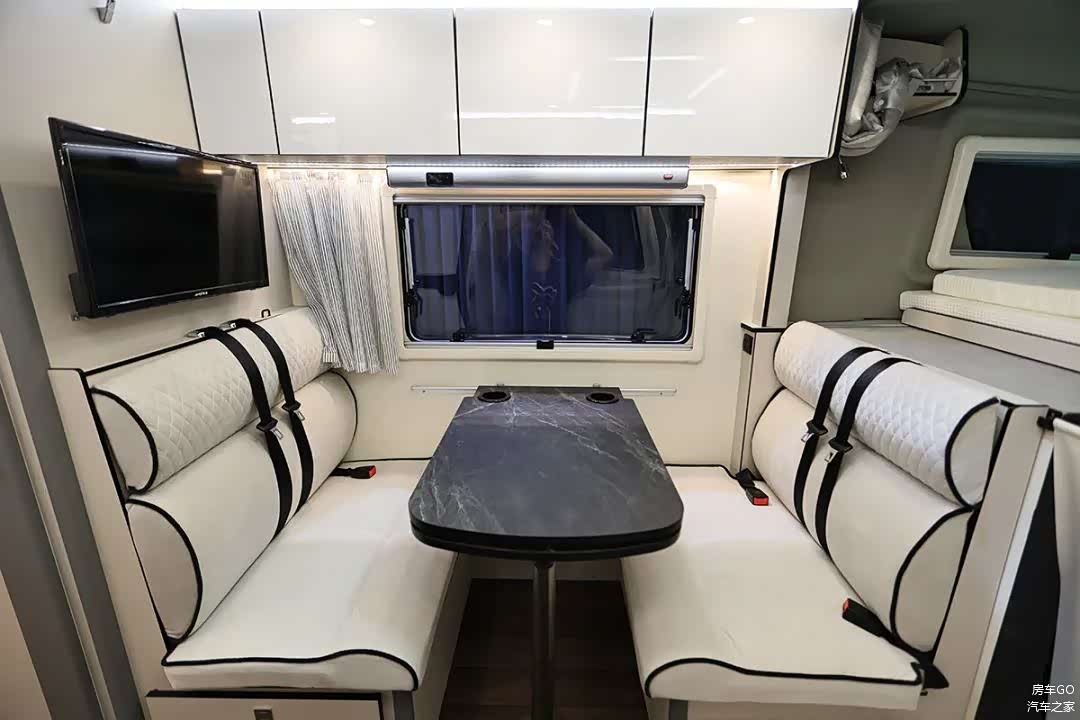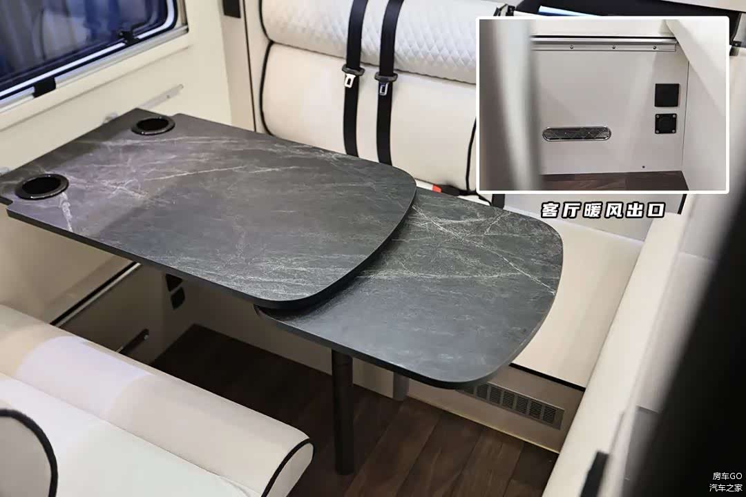 餐桌采用可拓展设计,客厅区域具备独立暖风口,配备了5000W燃油加热器/驻车暖风热水系统。