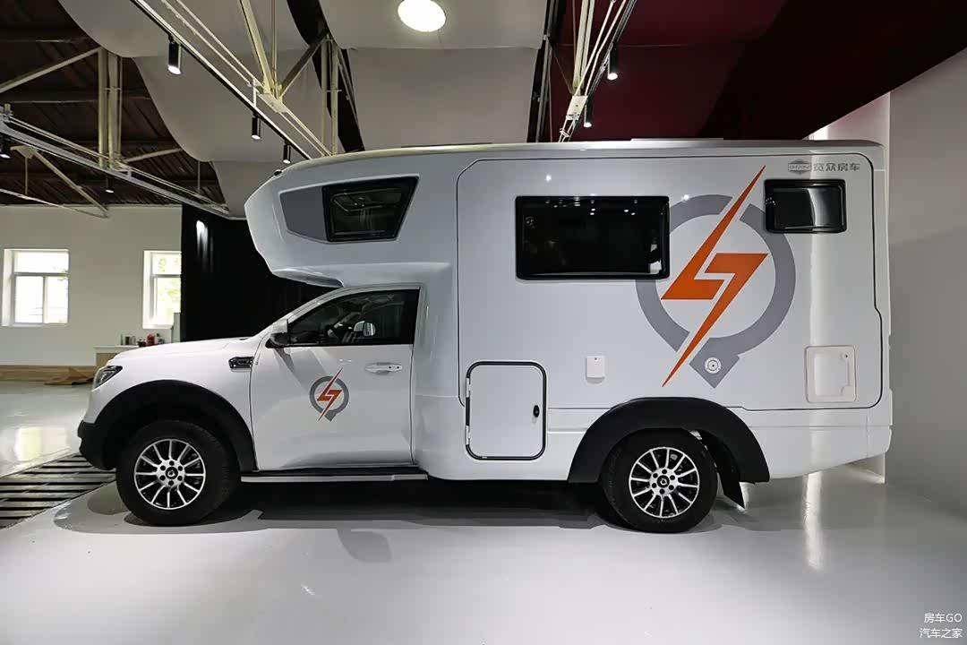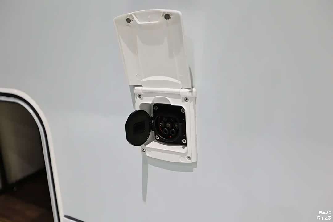 自由炮房车的市电接口采用和新能源汽车通用的7孔充电口,补电更加方便;车顶也安装了300W太阳能板。