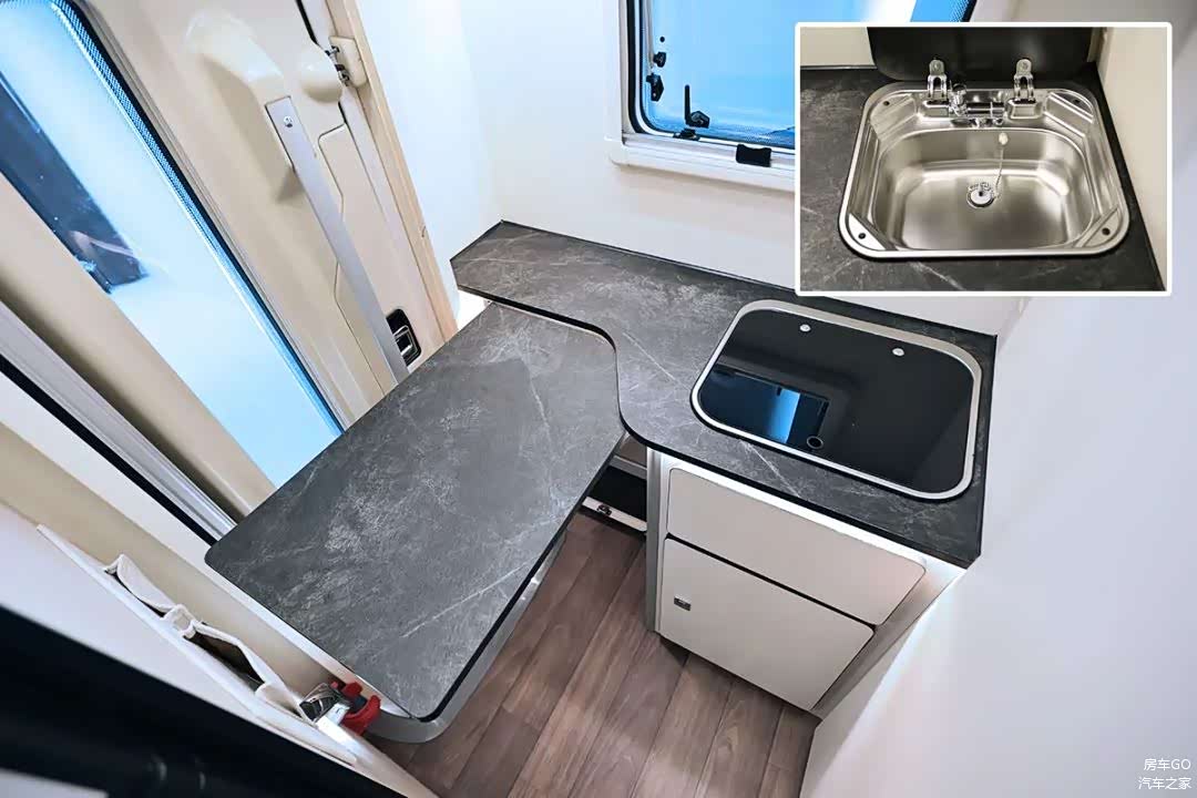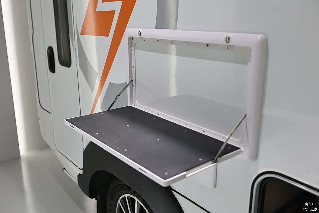 厨房功能集中在车尾区域,大尺寸的折叠桌板给用户更多操作空间。
