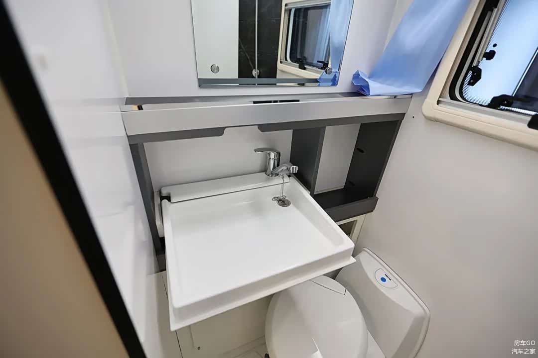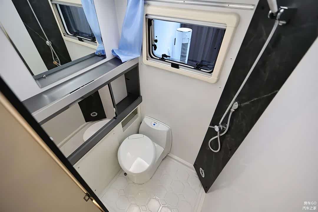 自由炮C的重点升级就是布局优化,不仅提供了能坐6人的大客厅/大床位,即使是皮卡底盘房车的弱项卫生间空间,也达到了令人满意的水平,车内高度实测1.85米。