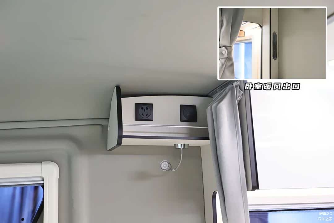 卧室两侧预览了电源插座、阅读灯及置物架,还为床位单独设计了暖风出口。