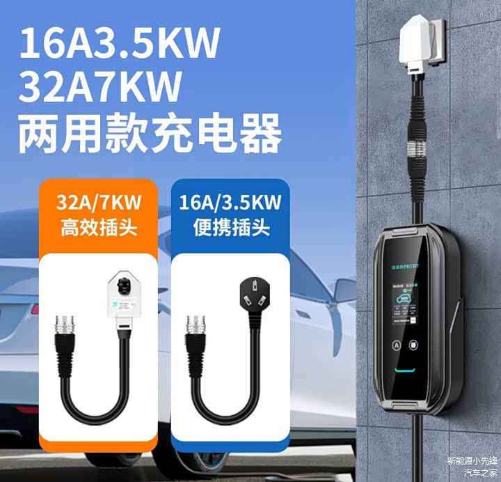 其实主流新能源汽车,交流慢充口最大都是支持220V32A7KW充电速度的。但是因为家用插座最大只有16A,所以便携式随车充一般都是16A3.5KW的。