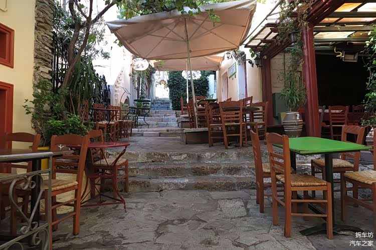 镇上的每栋民居,都保持着一定间距,给人一种很从容的感觉。拥挤、嘈杂、喧闹等我非常熟悉的词汇,在这儿恐怕全用不上。但不管怎么说,希腊的经济在欧美国家当中,算是比较落后的,这一点从房屋与汽车就能看出来。您如果阅读我的美国游记,就会发现,满大街那些普通民居,有不少都很像咱们的度假村,还得是五星级的。
