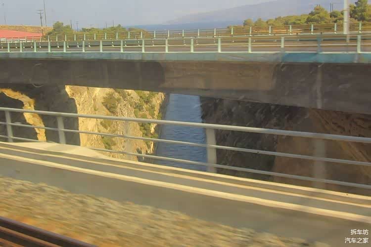 随后换乘的火车很漂亮,有点儿像咱们的高铁,但因换乘时间极短,没来得及拍照。另一个遗憾是,火车经过科林斯运河时,只是一闪而过(下图),随后的下车地点距离运河比较远,再跑回去看的话,有点儿不划算。