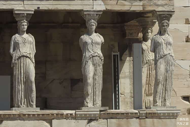 这座神庙最有特色的,是其中一面的6根柱子,雕刻成女性造型,可谓独具匠心。不过,为了保护,原物已经搬到山下的卫城博物馆里去了(希腊有5个,另1个在英国),摆在现场的,是复制品。