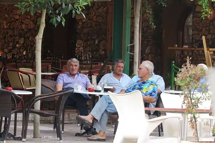 下图中的景象,在希腊同样极为常见——老人们三五成群,坐在沿街的露天座位上闲聊,从骨子里透着悠闲、享受、舒适。