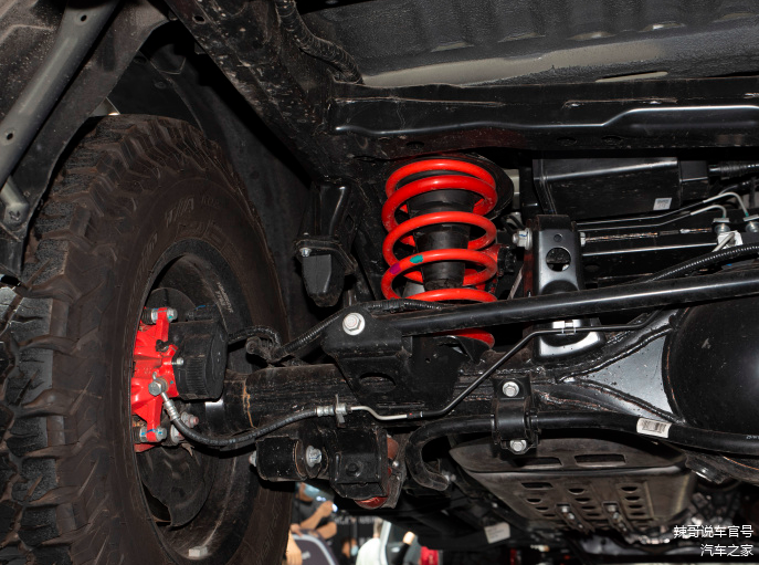 不过作为一款越野型皮卡,长城炮黑弹的核心卖点还是要落在机械配置上,这款车是由长城汽车和运良越野共创开发,前后历经多次修改与测试才得以诞生。前双横臂是独立悬挂、后多连杆式非独立悬挂组成的底盘进行了重新设计,质量更轻抗力更强,针对野外变化莫测的道路反应更快。此外还配备了专业级的K-MAN减震、百路驰KO2轮胎,不仅提供强有力的支撑与回弹抑制,也可以应对各种路况,具备较为广泛的地形通过能力。