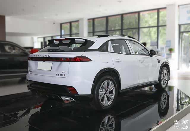 奔腾B70S的造型是轿跑SUV,与马自达CX-4类似,视觉效果不如传统SUV高大,虽然车身不高,但整体修长,长宽高分别为4555mm、1850mm、1515mm,整车尺寸在同级SUV中不占优,但低重心利于操控,但2.75米的轴距让第二排腿部空间没有任何问题。