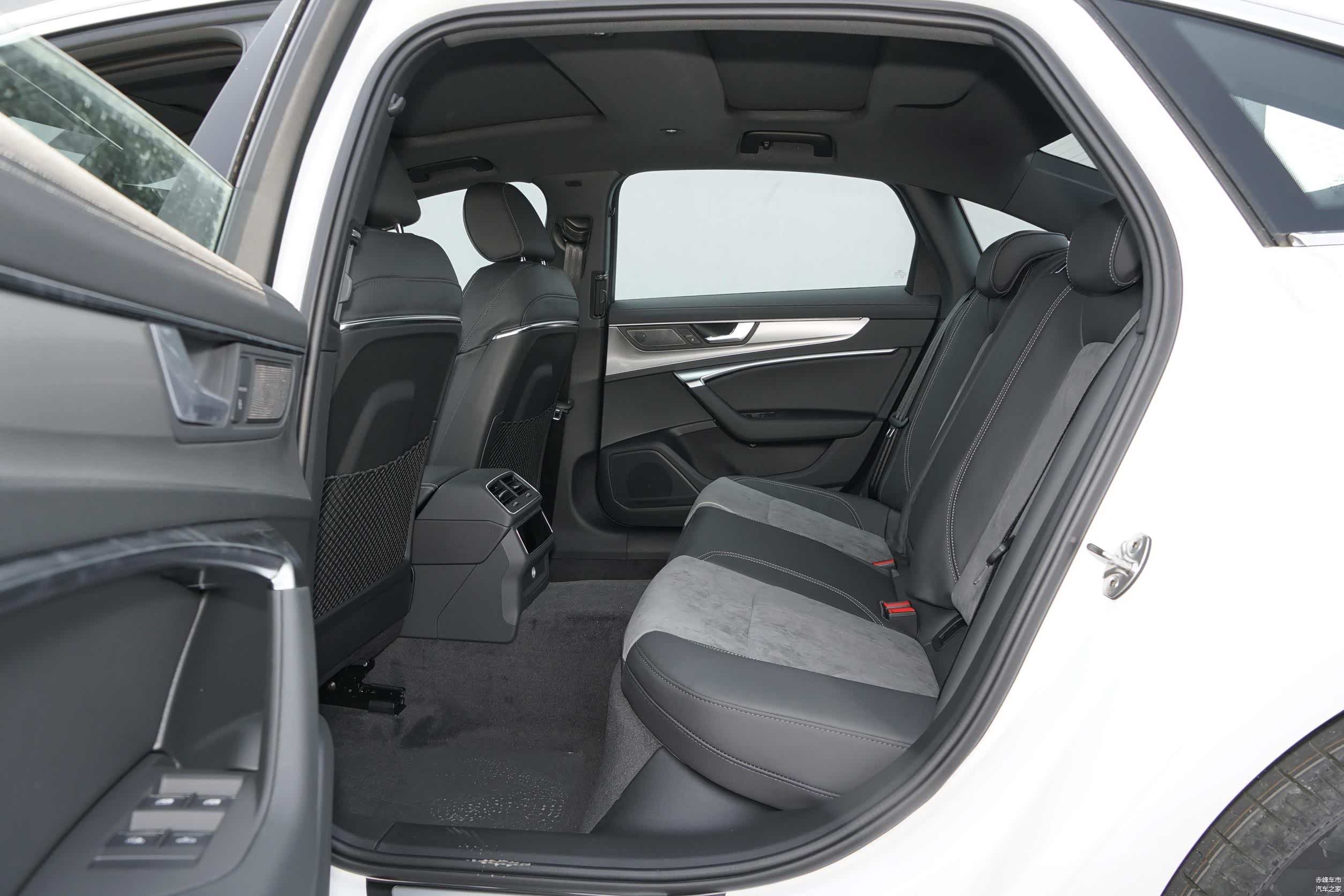 全新奥迪A6L的轴距已经超过了3米,让后排空间表现更出色,身高180cm的成年男性坐在后排腿部空间有两拳半的距离,头部空间有一拳距离,座椅的角度很合理,长时间乘坐也不会感到疲惫,新款车型的座椅采用翻包皮材质,相比传统的真皮来说,冬季不会很凉,夏季的透气性表现也很不错,不会觉得闷热。因为全新奥迪A6L是四驱车型,所以地台的中间位置凸起比较高,后排的中间位置不适合长时间乘坐。
